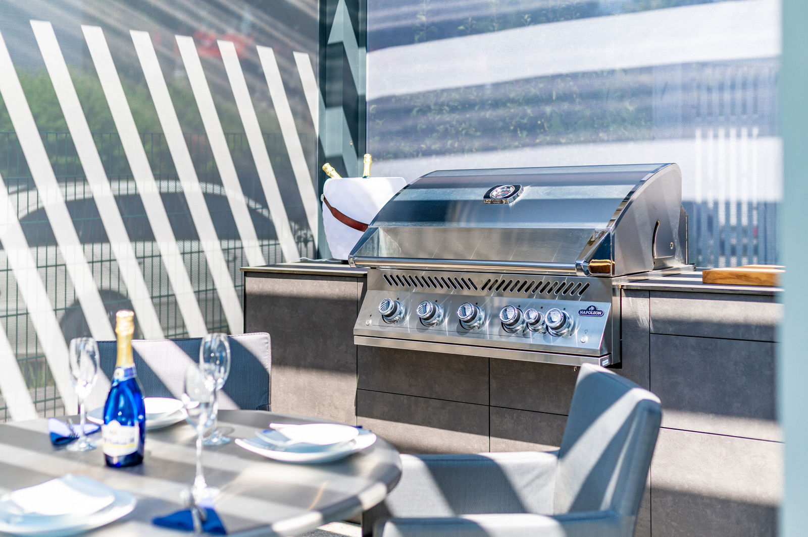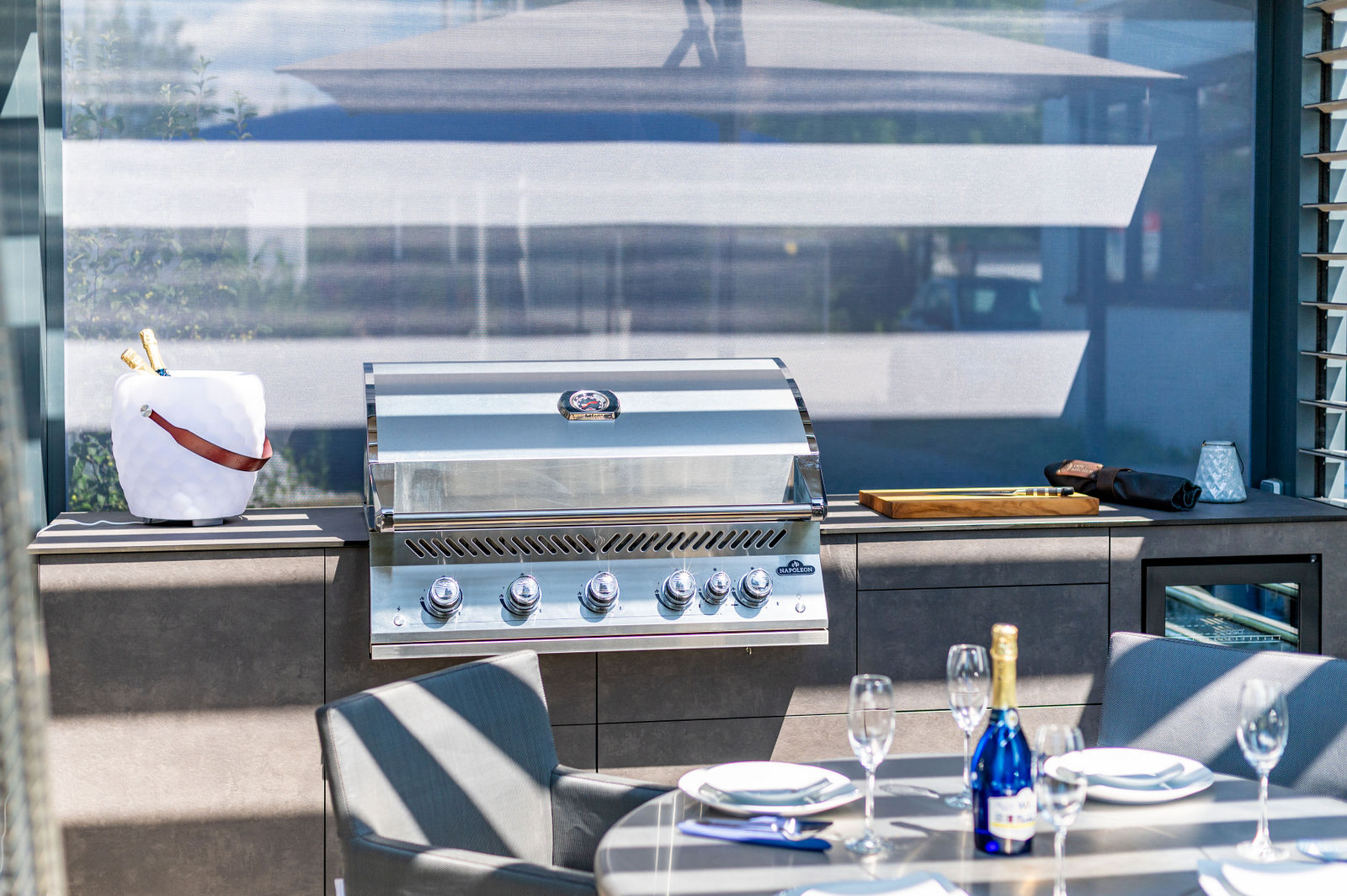 Outdoorküche mit Napoleon Premium Gasgrill im Dekor Dark Grey-