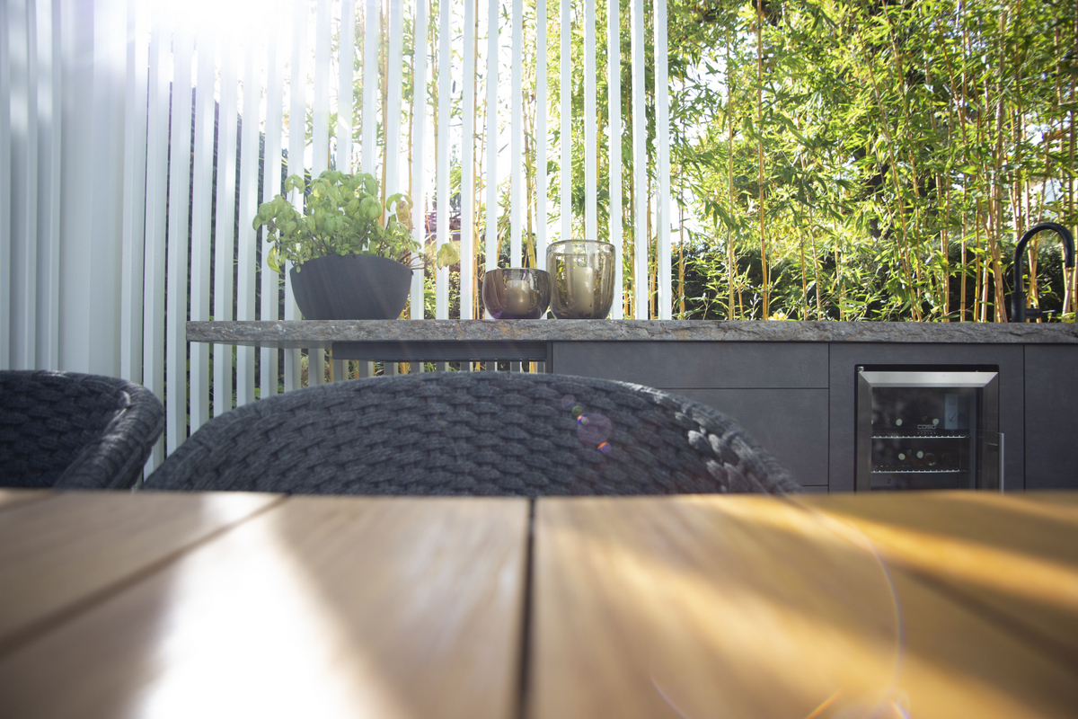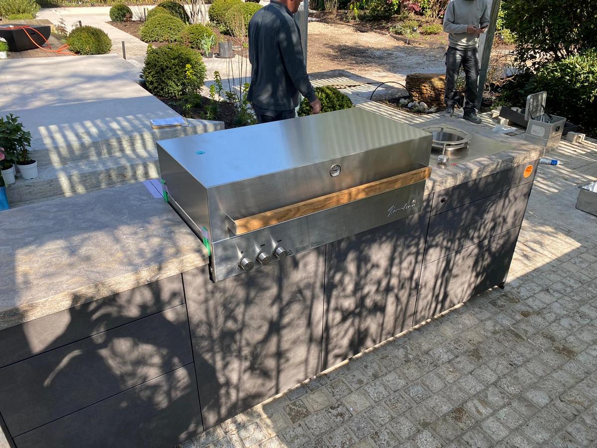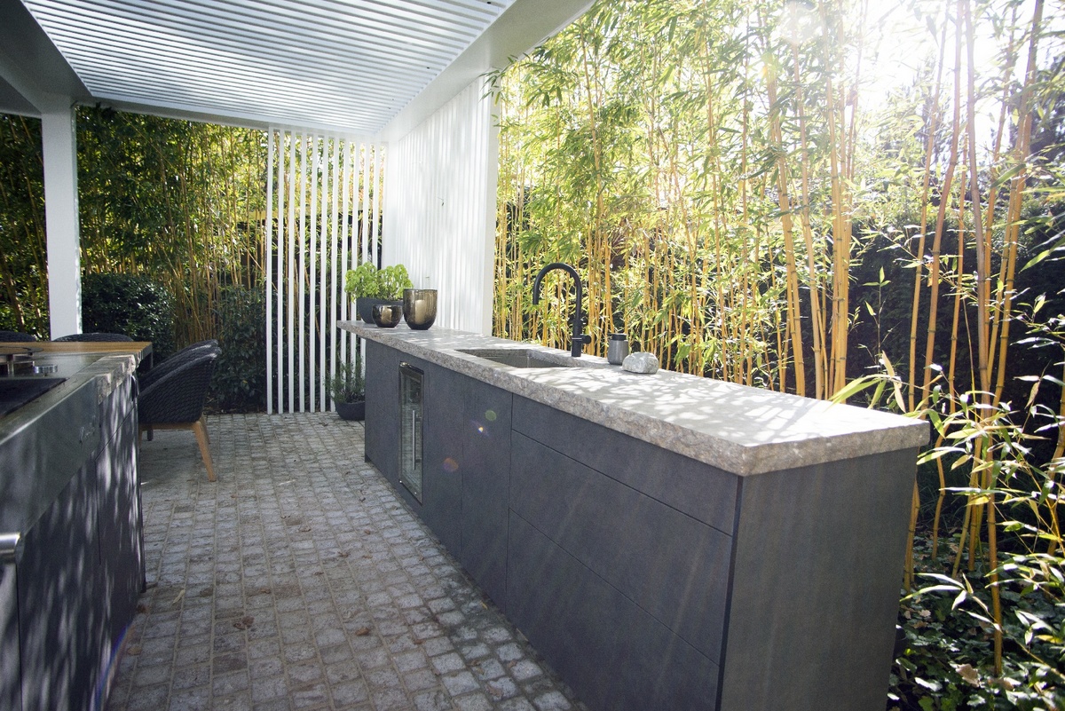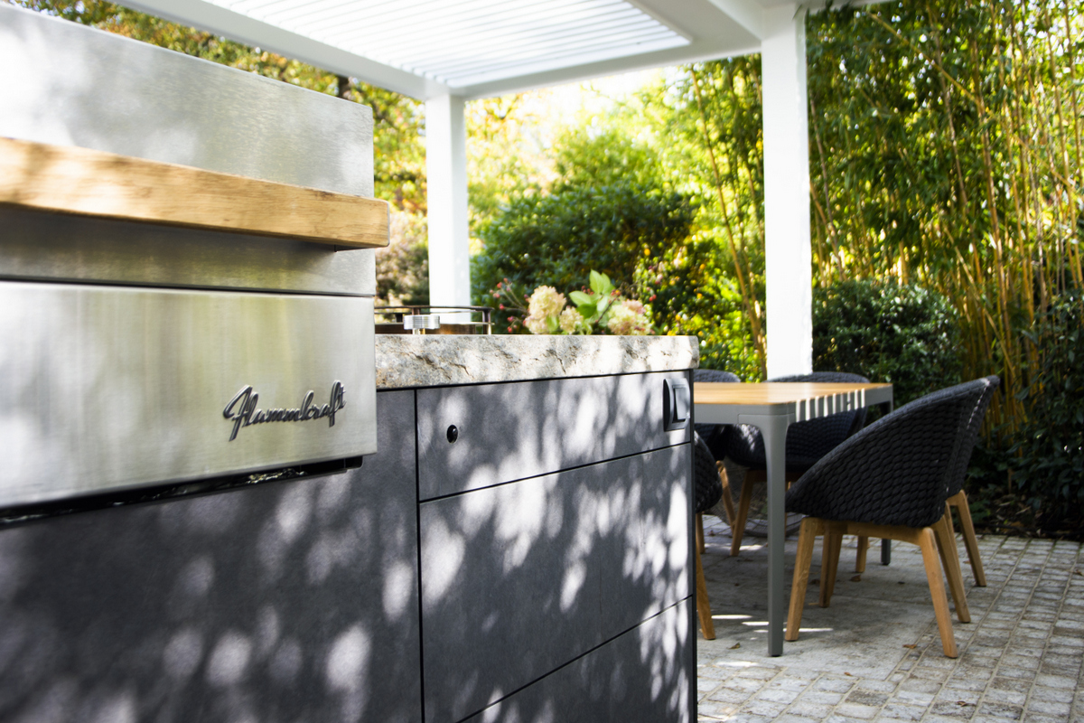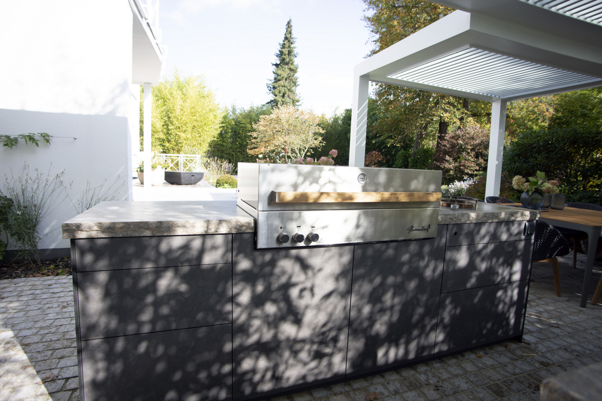 Unter einem stilvollen weißen Design-Pavillon verbinden diese beiden Outdoor-Küchenzeilen in München modernes Design, durchdachte Funktionalität und hochwertige Materialien. Dieses Projekt in Zusammenarbeit mit dem Studio 43 München zeigt, wie Outdoor-Kochen zu einem echten Erlebnis wird.