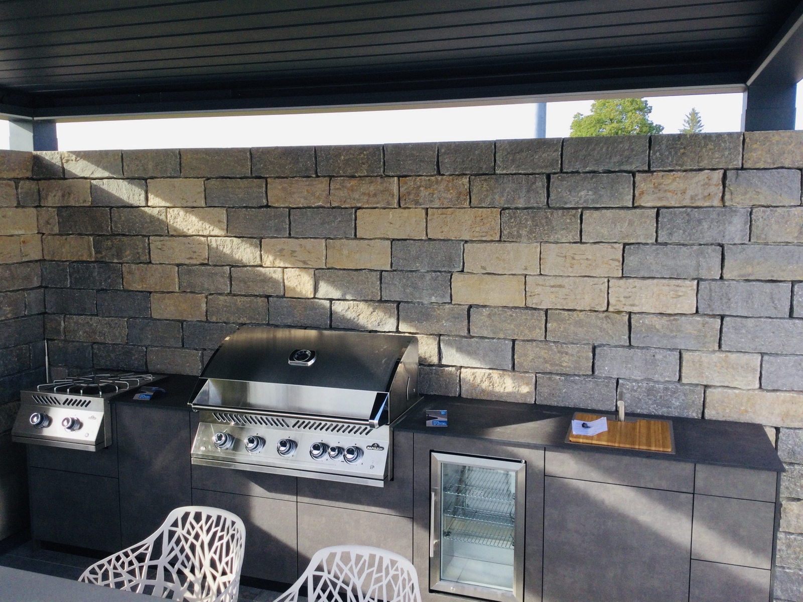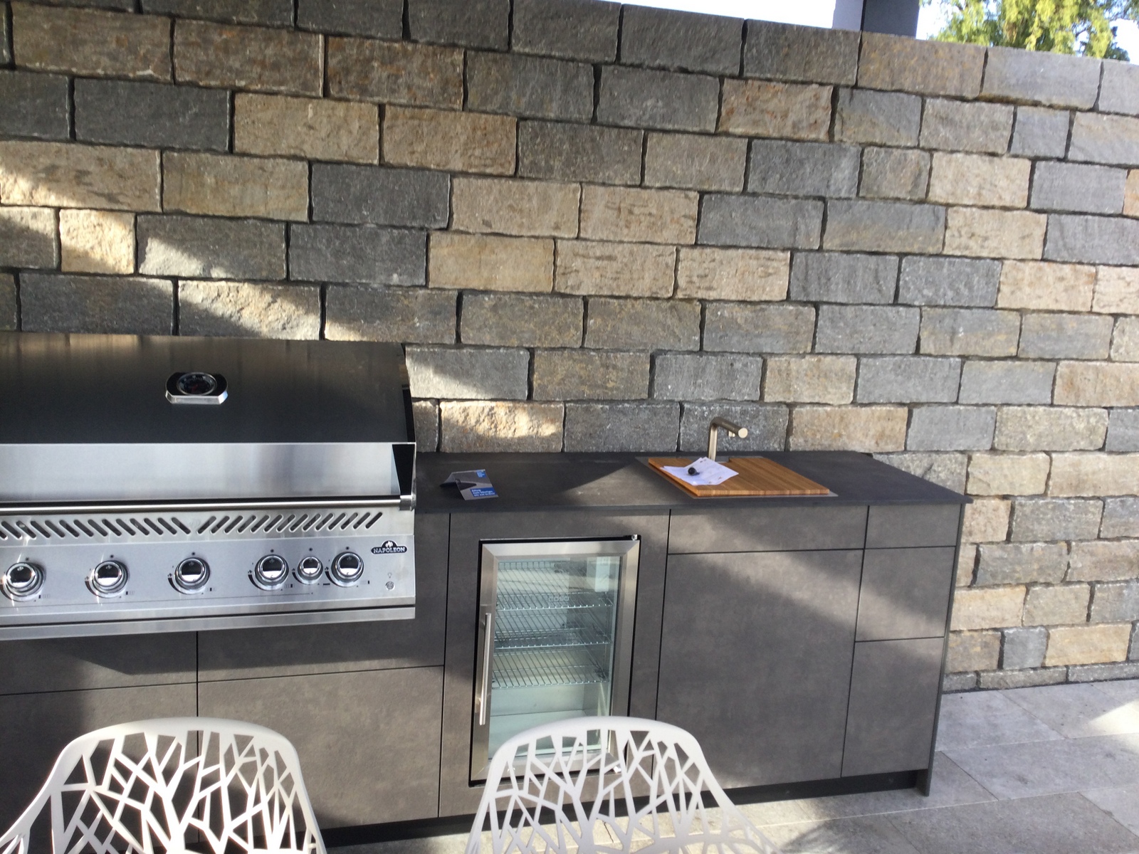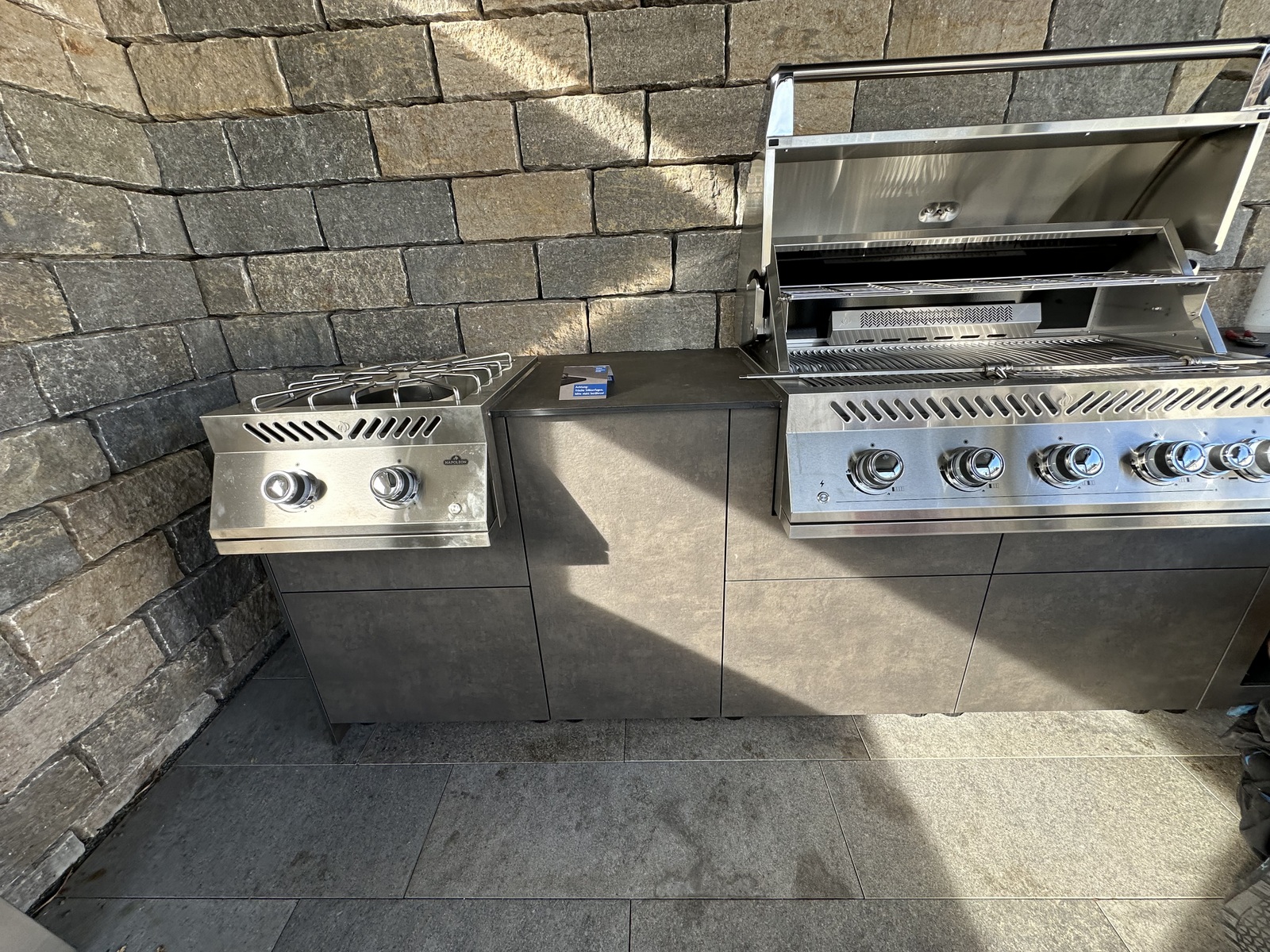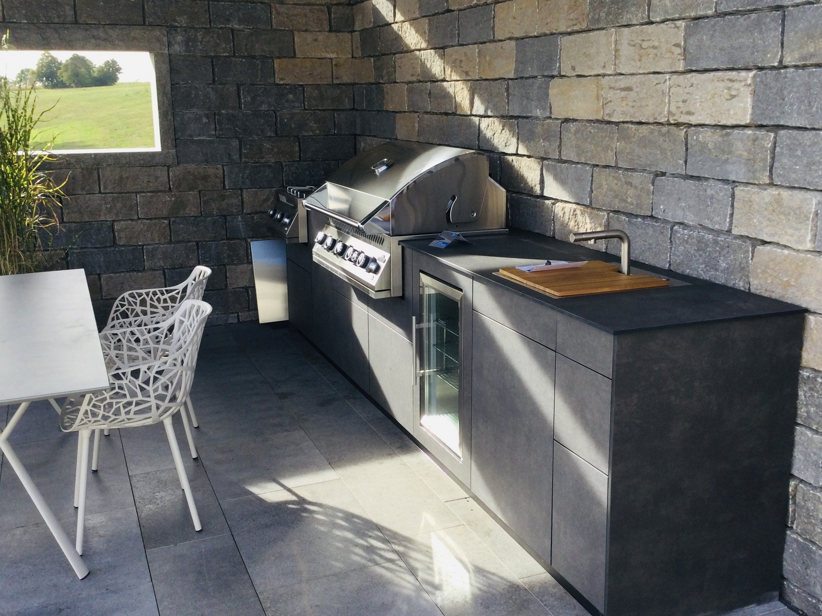 In Zusammenarbeit mit unserem Partner Küchen Kompetenz entstand diese hochwertige Outdoorküche in Stuttgart, die modernes Design mit erstklassiger Funktionalität verbindet. Mit ihrem edlen Dark Grey Dekor und ihrer durchdachten Ausstattung ist sie die ideale Lösung für anspruchsvolle Outdoor-Köche.