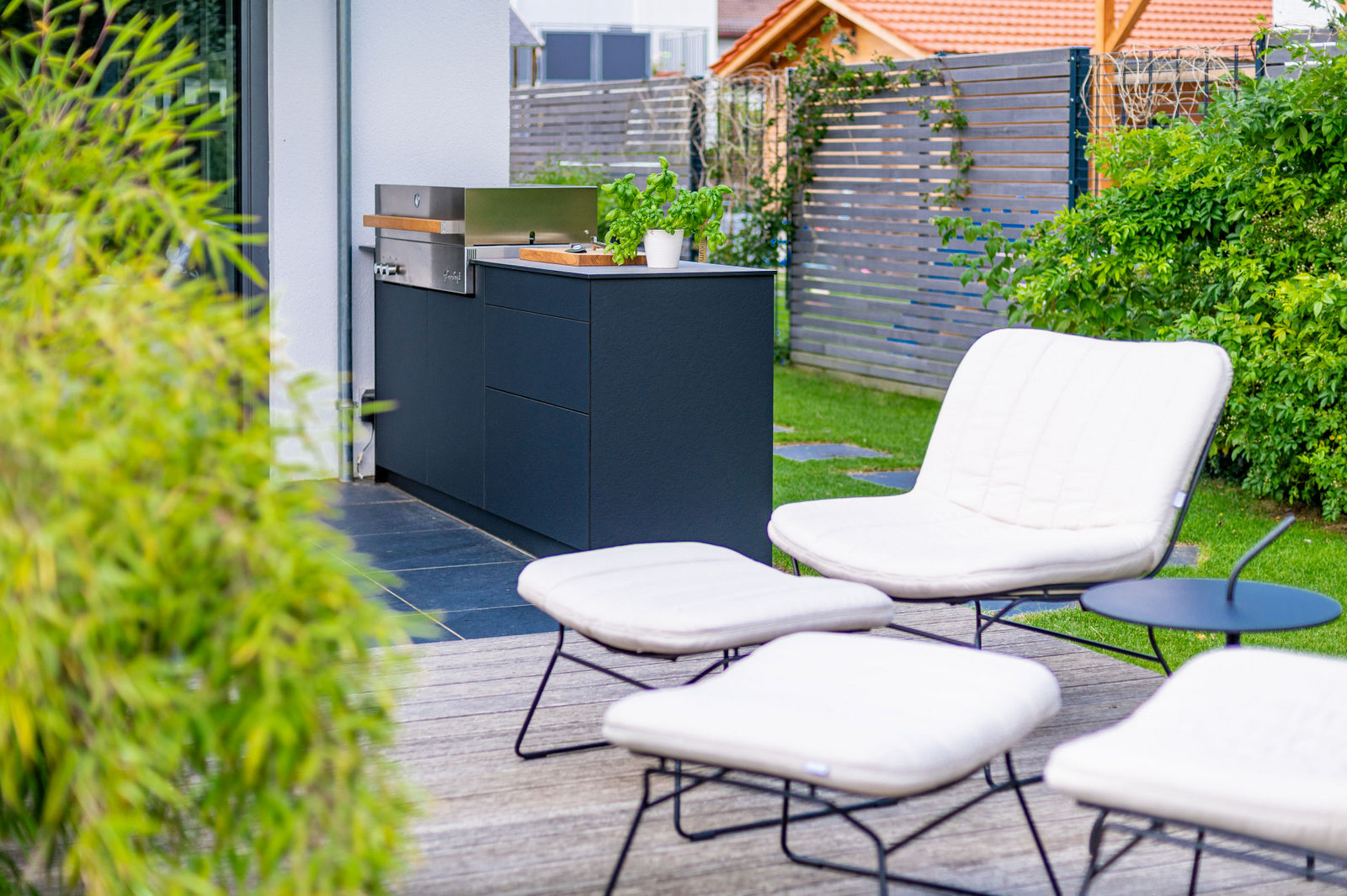 Im malerischen Wolfratshausen präsentiert sich diese elegante Outdoorküche als perfekter Ort für genussvolle Stunden im Freien. Mit einer Kombination aus modernem Design, hochwertigen Materialien und erstklassiger Ausstattung wird diese Küche zum Mittelpunkt jeder Terrasse.