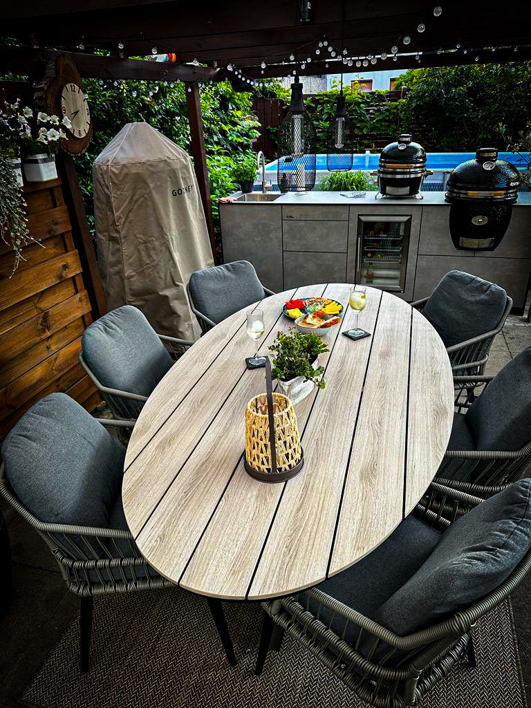 Unsere Outdoorküchen bestehen aus 13 mm starken, doppelt gehärteten HPL-Fronten – wetterfest, kratzfest, lichtecht und pflegeleicht. Die 12 mm starken Korpusse aus Kompaktplatte sorgen für maximale Stabilität. Dank FSC-zertifizierter Rohstoffe und einem modernen, fugenbildoptimierten Design steht OUT4KITCHEN für nachhaltige Qualität und zeitlose Ästhetik.